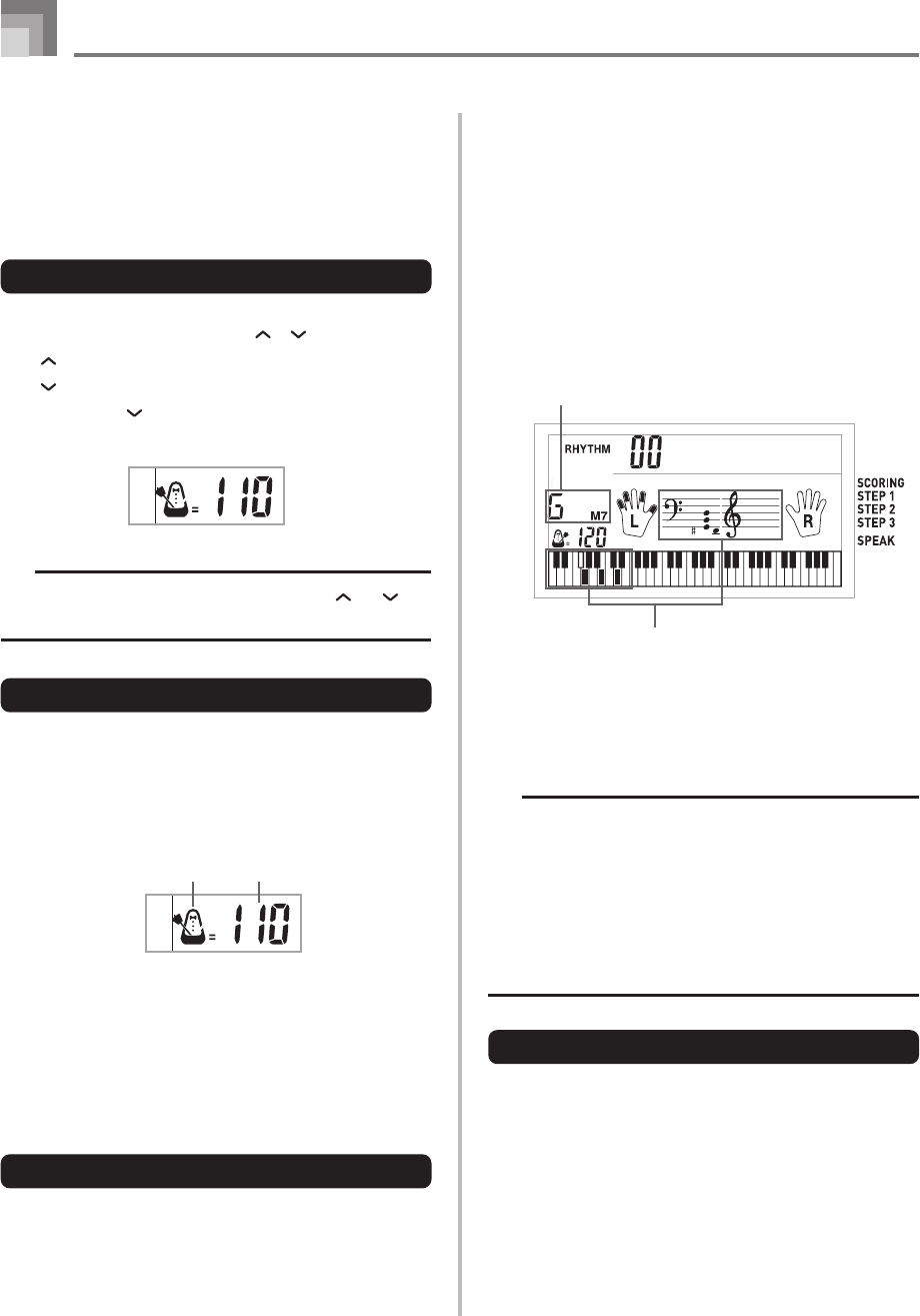 及拍子一起显示在显示屏上。图形节拍器可帮助